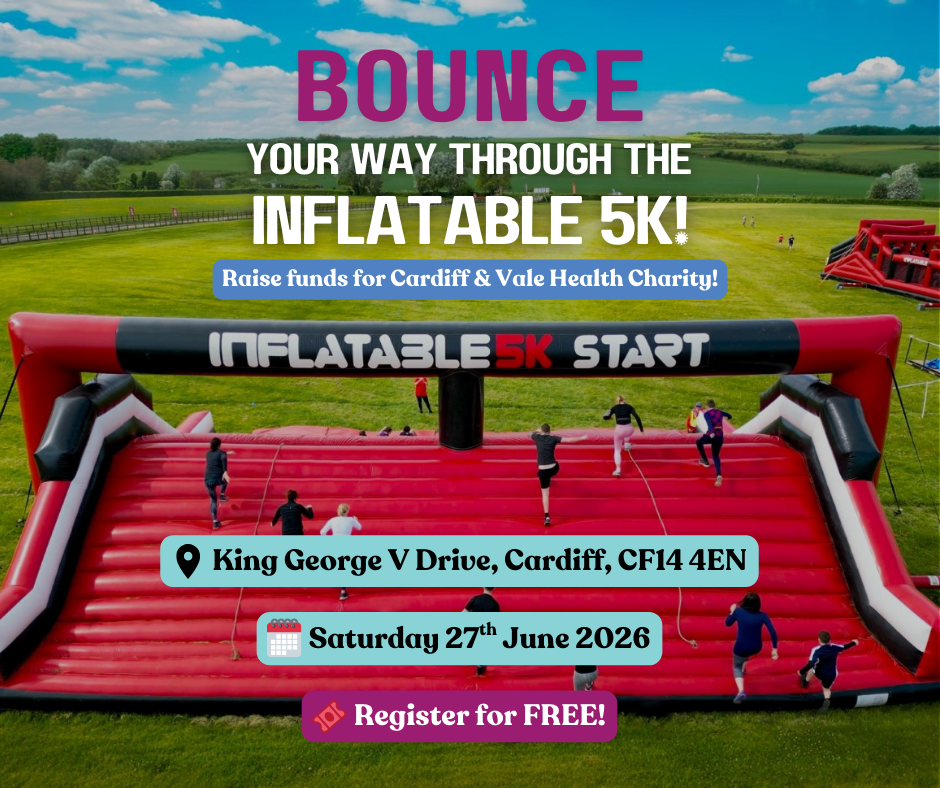 This is your chance to take part in the most exhilarating and unforgettable race of the year, while helping us enhance patient care across Cardiff and the Vale. Every bounce you take helps us go further in supporting funds for equipment, research, treatment, and wellbeing projects.
